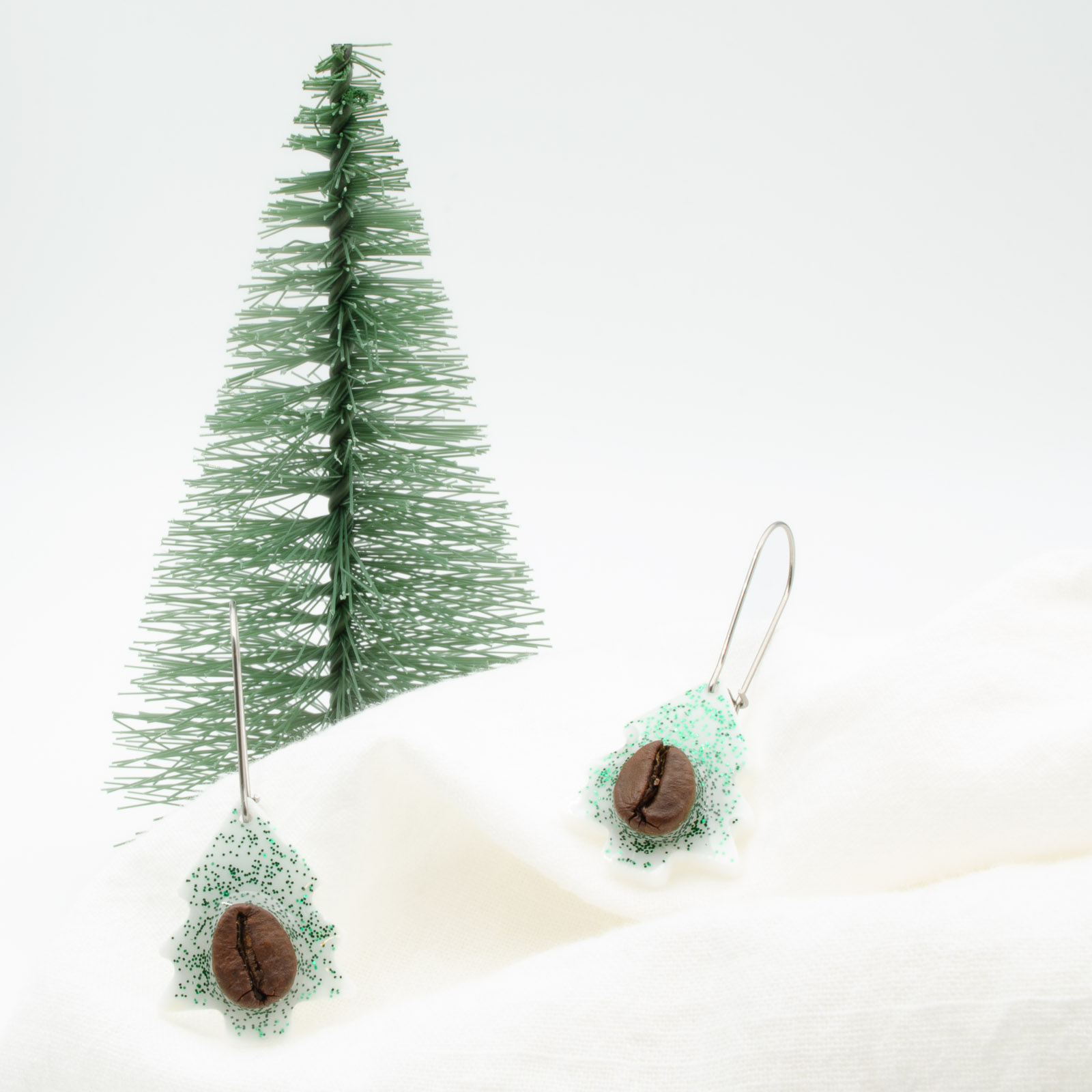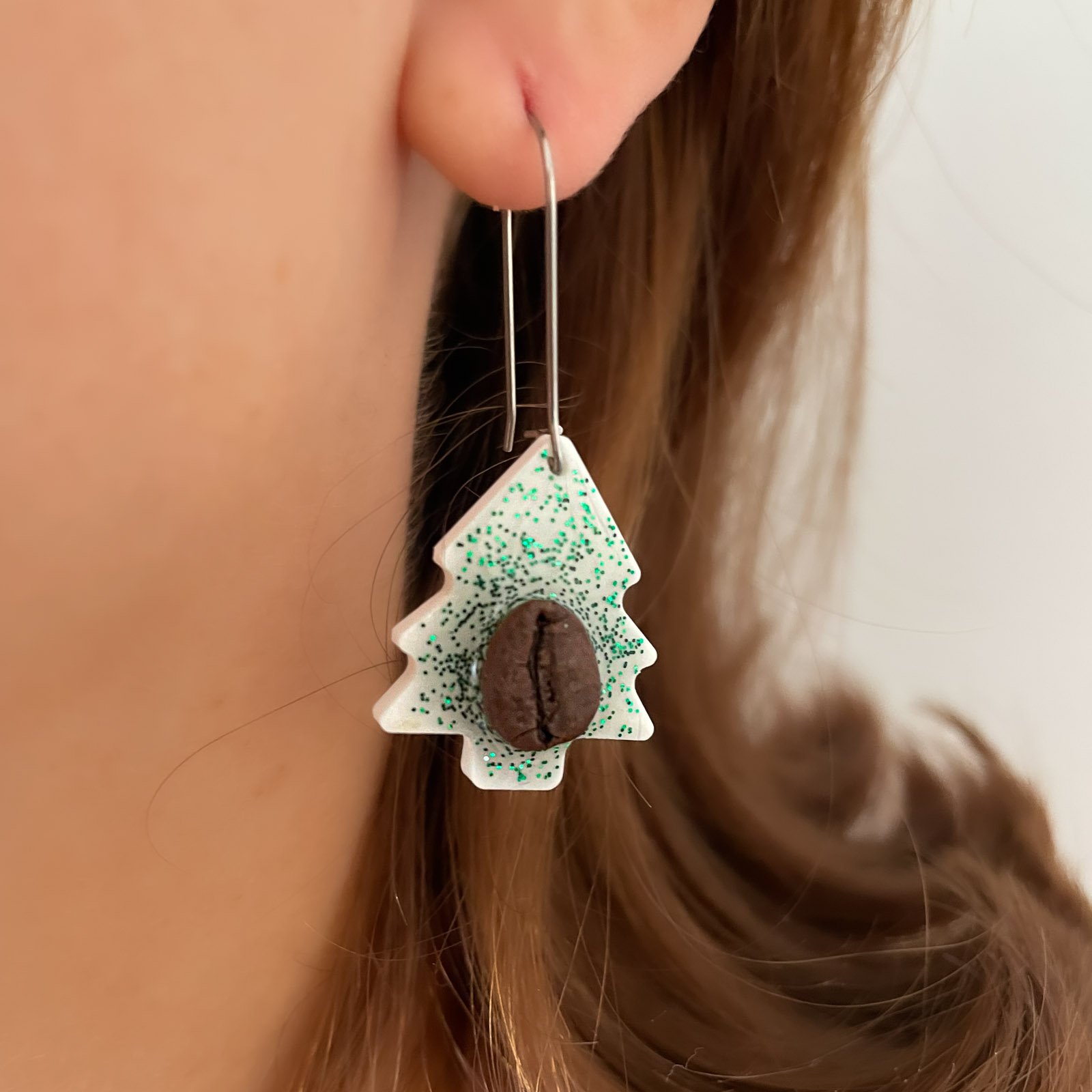 Cerceii „GreenSpice” sunt esența sărbătorilor într-o versiune mică și super jucăușă: brăduți verzi cu glitter fin și un bob de cafea real în centru, care schimbă instant vibe-ul accesoriului. Sunt ușori, veseli și au exact doza de „holiday sparkle” care face ca orice ținută să pară puțin mai festivă.