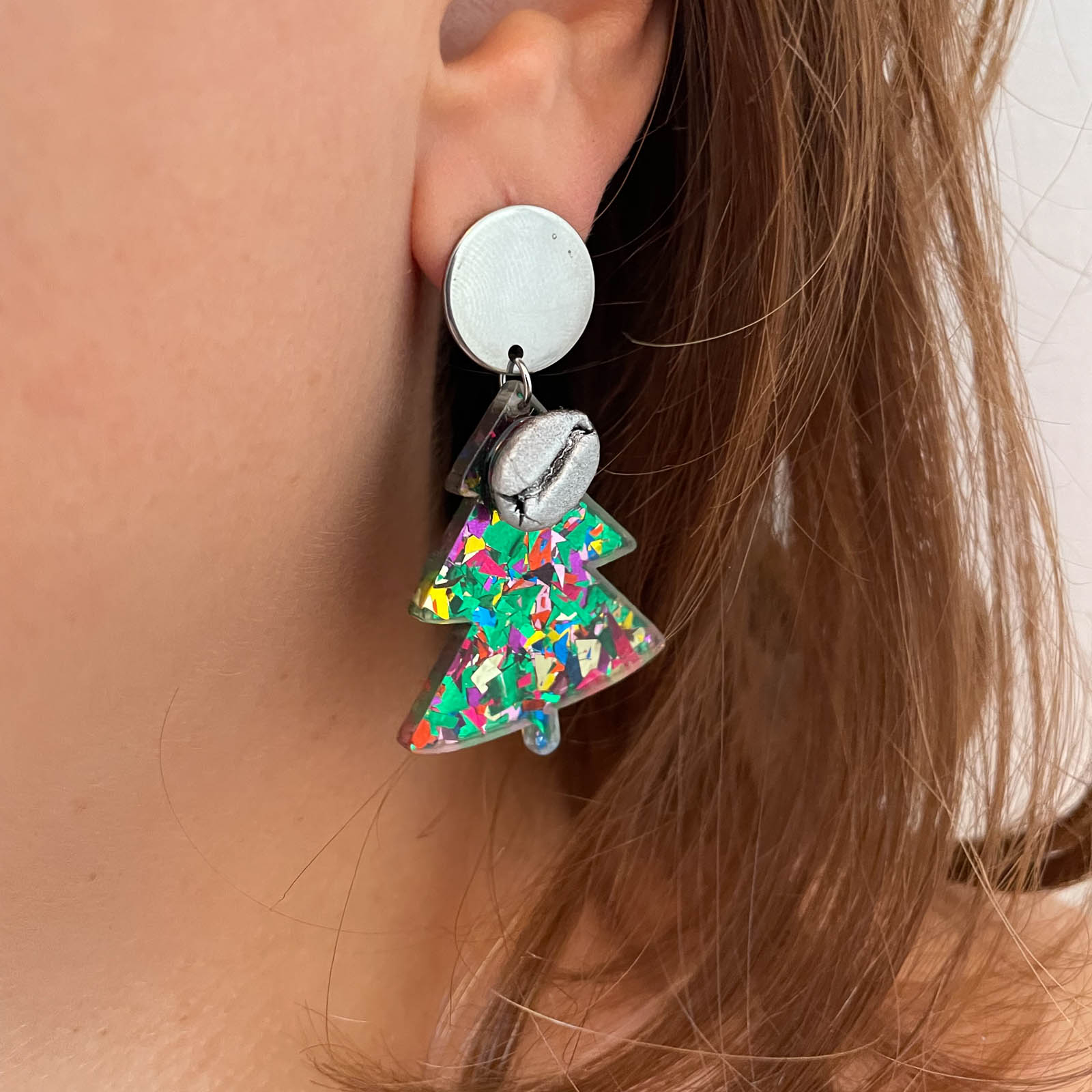Cerceii „Rainbrew” sunt cei mai veseli brăduți ai colecției: multicolori, luminoși și decorați cu un bob de cafea argintiu care aduce acel twist jucăuș, recognoscibil imediat. Sunt ușori, expresivi și plini de energie, genul de accesoriu care ridică instant mood-ul ținutei și te pune în atmosfera sărbătorilor fără efort.