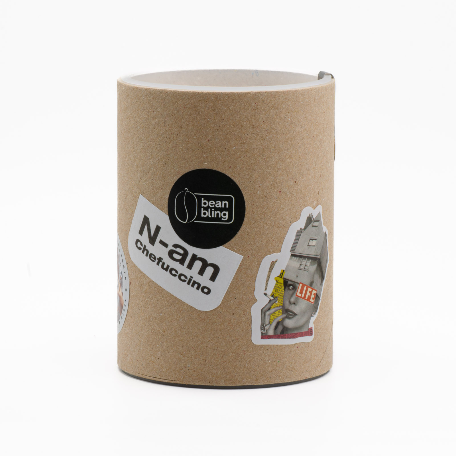 Ambalajul este format dintr-o cutie din carton reciclat în culoarea kraft, decorată cu stikere artsy și etichete BeanBling personalizate. În interior vei găsi un săculeț textil în care cana stă comod și în siguranță. În cană!? Bijuteria aleasă de tine și încă ceva...bun :) Poți reutiliza ambalajul ca și suport de pixuri la birou sau cutie pentru depozitat mici chestii.