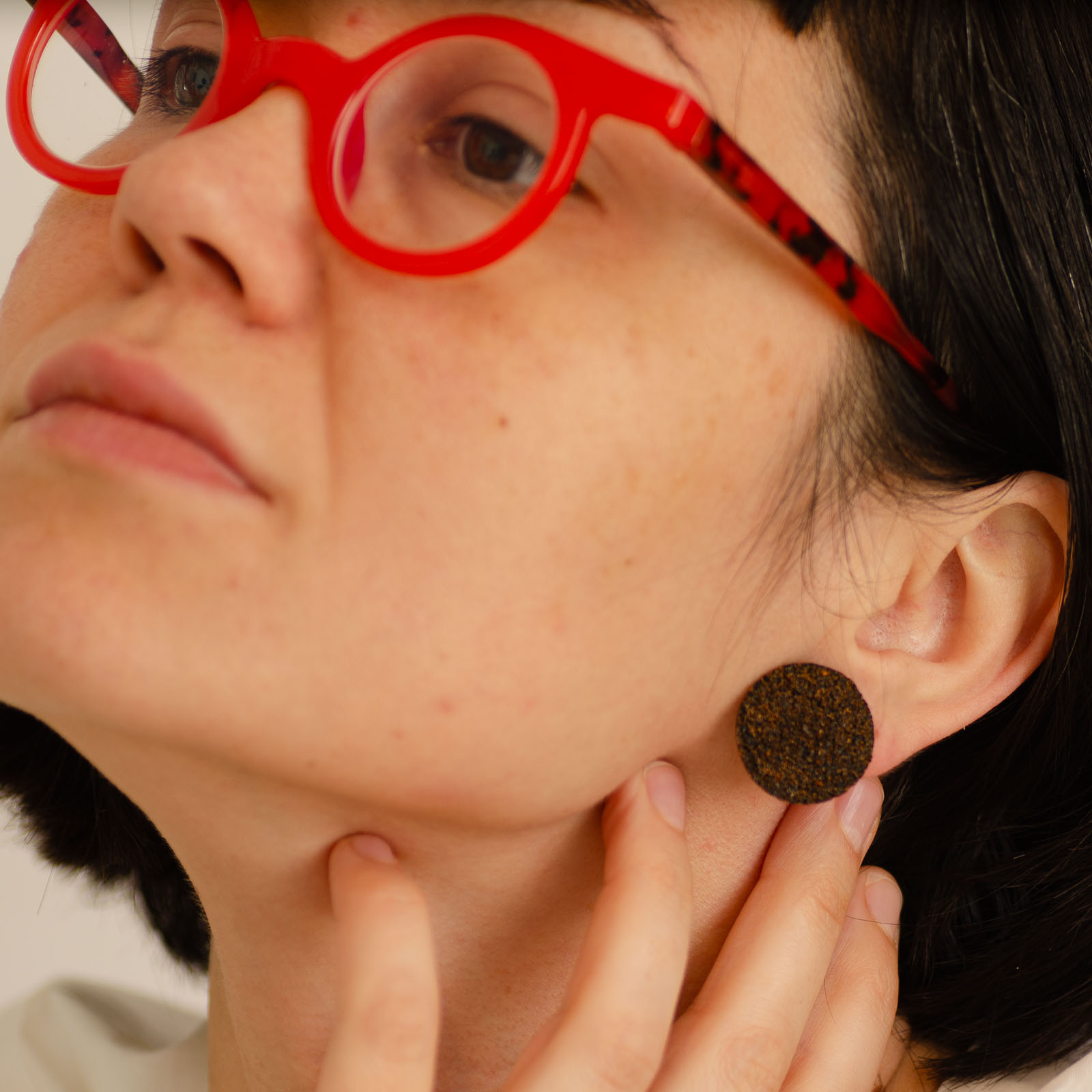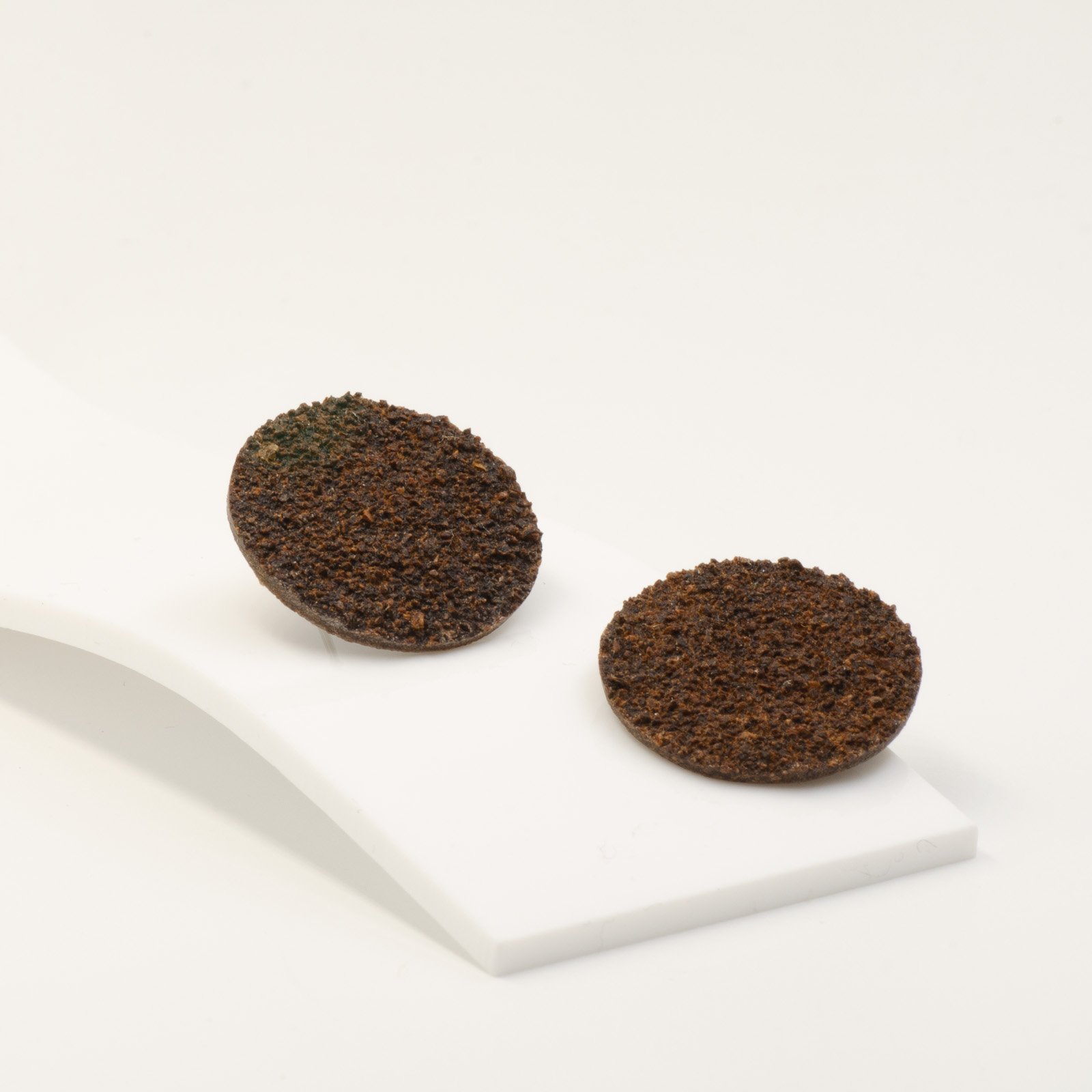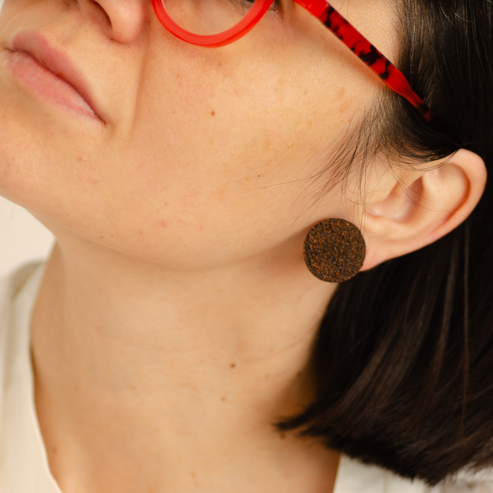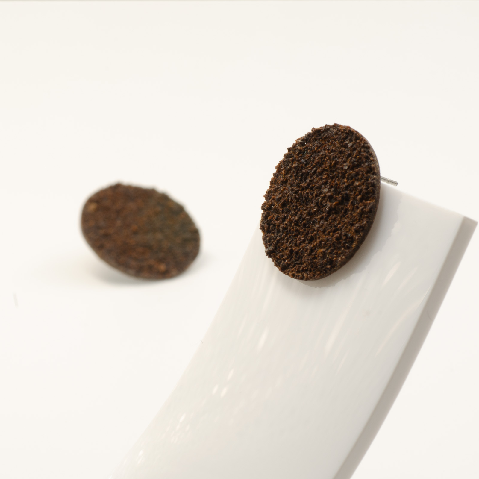 Toți cerceii BeanBling sunt realizați manual în România, din zaț de cafea reciclat, presărat în mai multe etape și sigilat în rășină, apoi combinat cu elemente din oțel inoxidabil 316L – un material hipoalergenic, rezistent la apă și uzură.