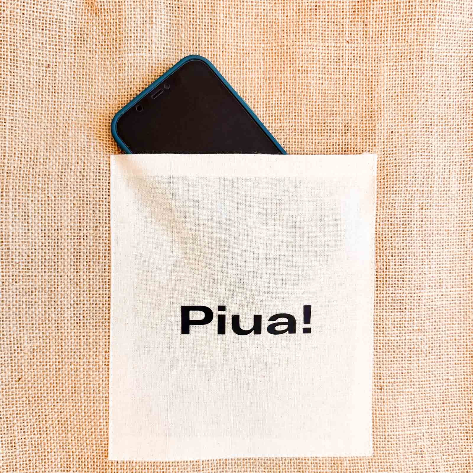 Panoul frontal din bumbac poartă mesajul „Piua”, unul dintre textele noastre recognoscibile, scurte și simpatice. O geantă cu personalitate calmă, ideală pentru zilele în care ai nevoie să o iei un pic… mai încet. Perfectă pentru plimbări, cafenele, drumuri la birou sau sesiuni de browsing prin librării.