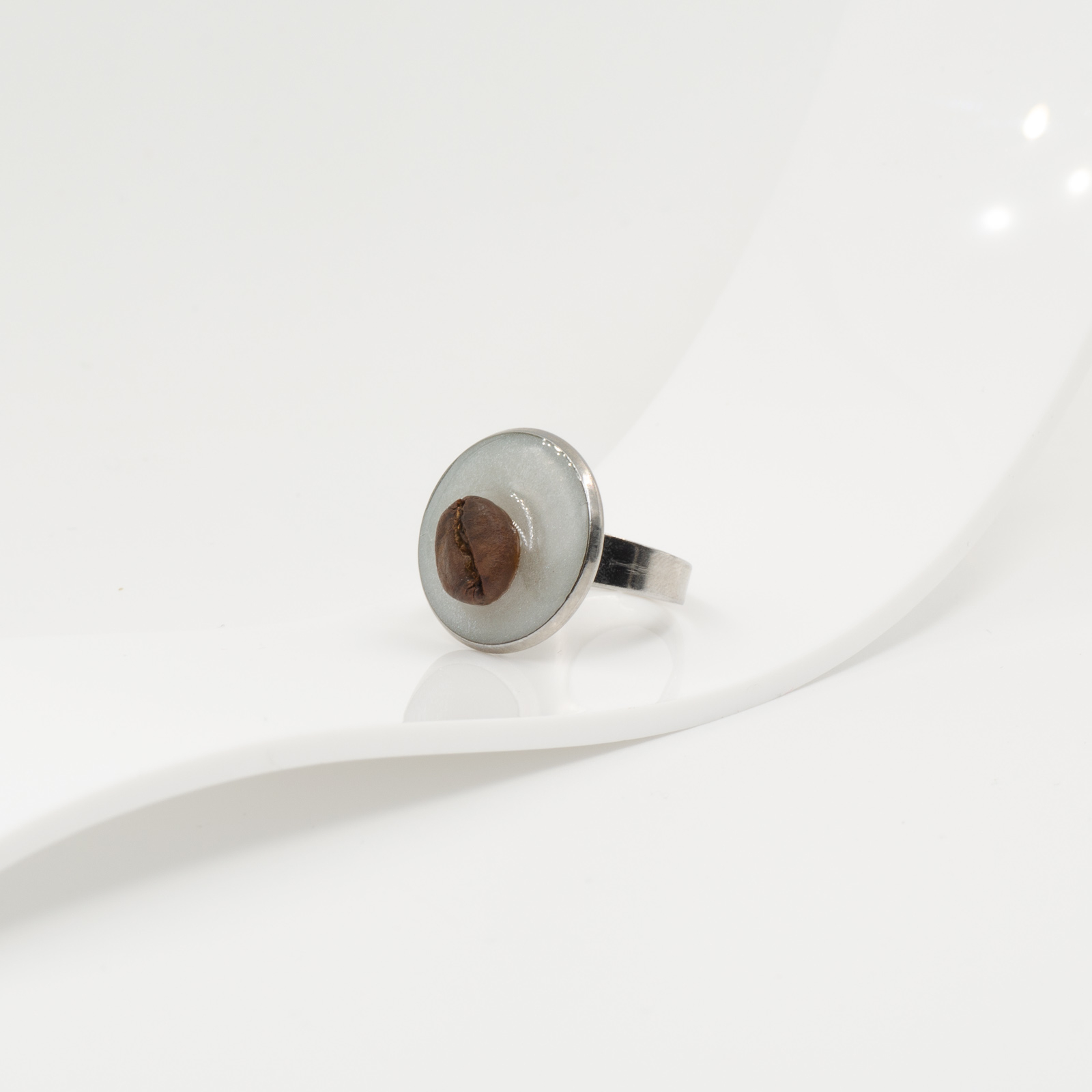Bobul de cafea, așezat pe un fundal silver metalizat, cu un aer industrial-luxury, descrie contrastul perfect între organic și metalic, între naturalețe și atitudine.